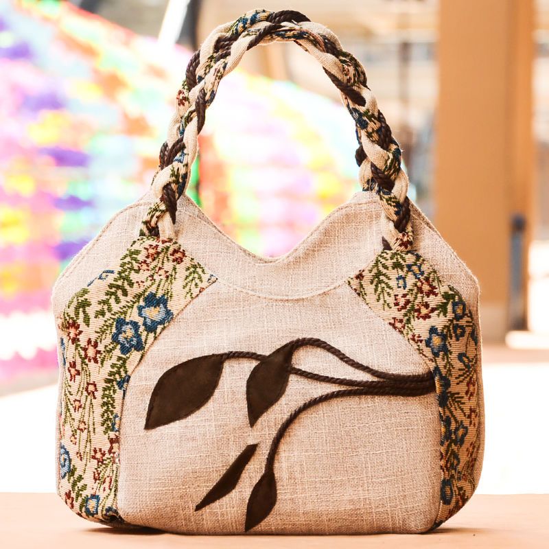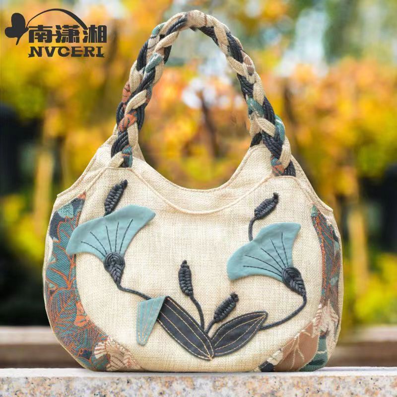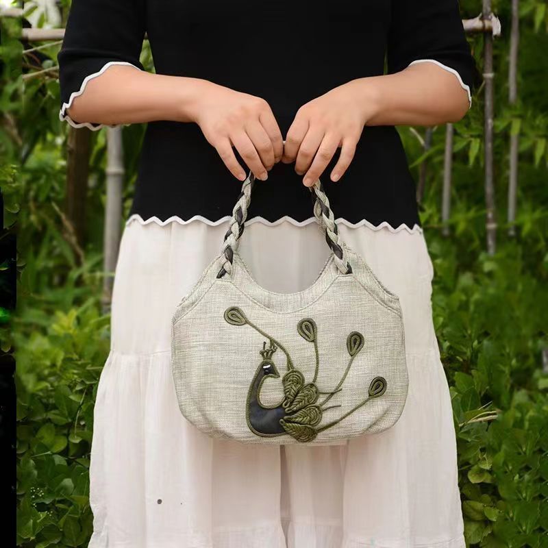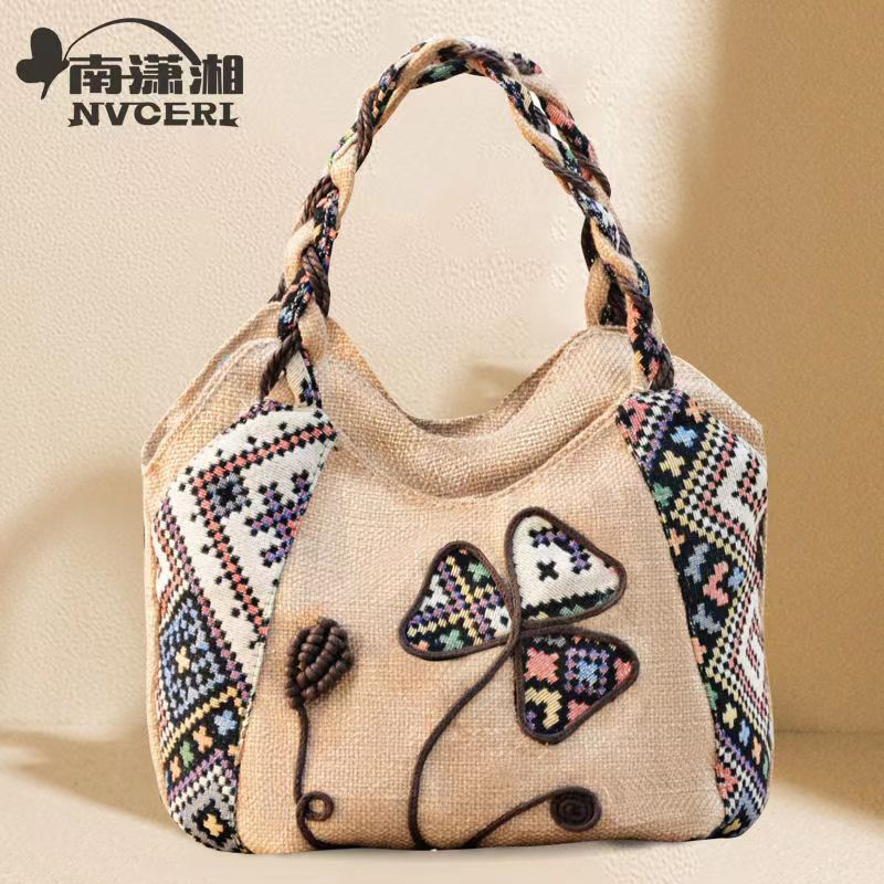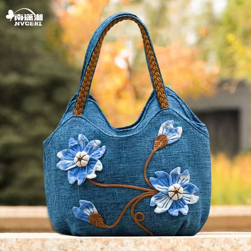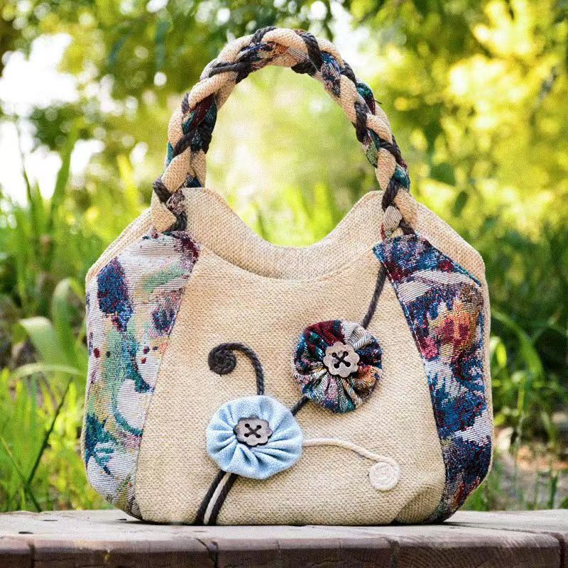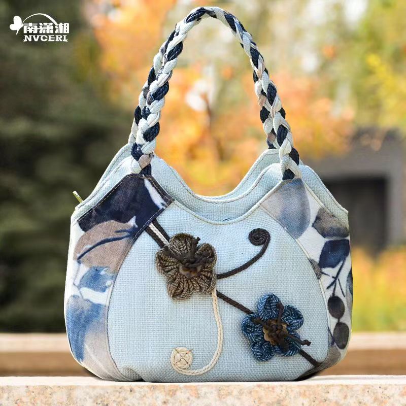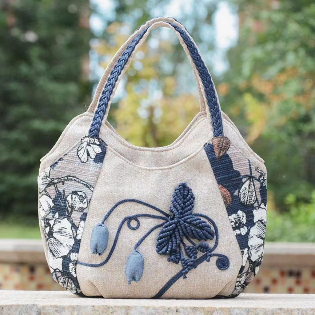 Middle aged women's bag, mother's bag, ethnic style handbag, women's cotton and linen cloth bag, simple and lightweight carrying bag, Chinese style handmade bag