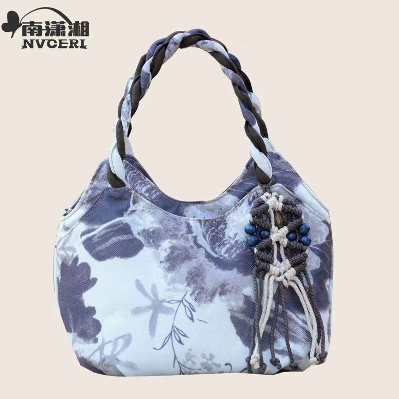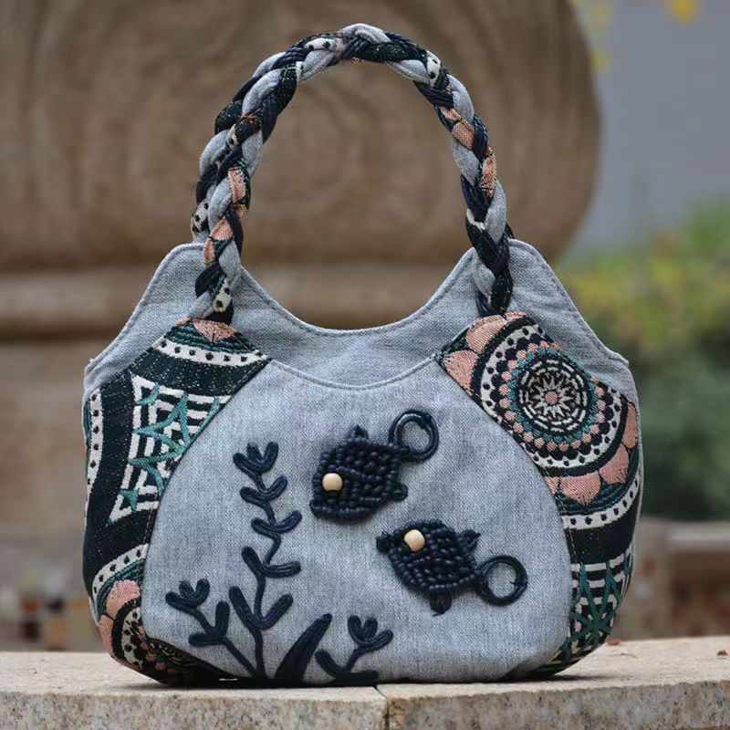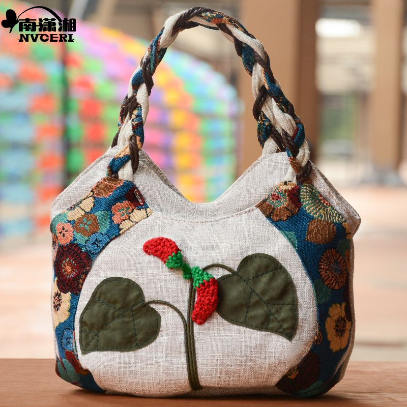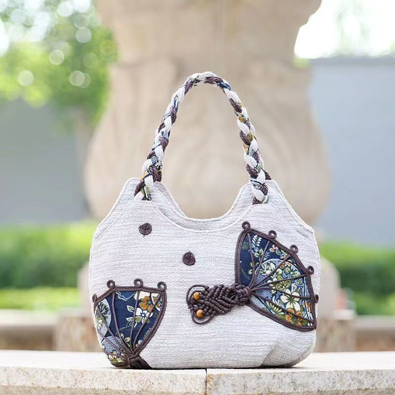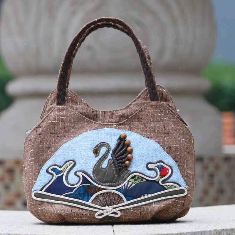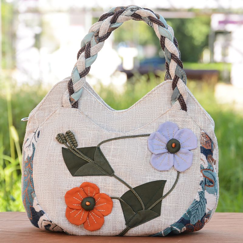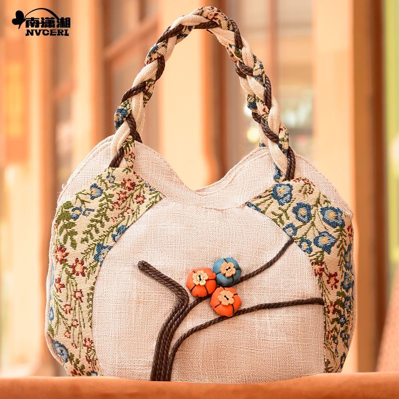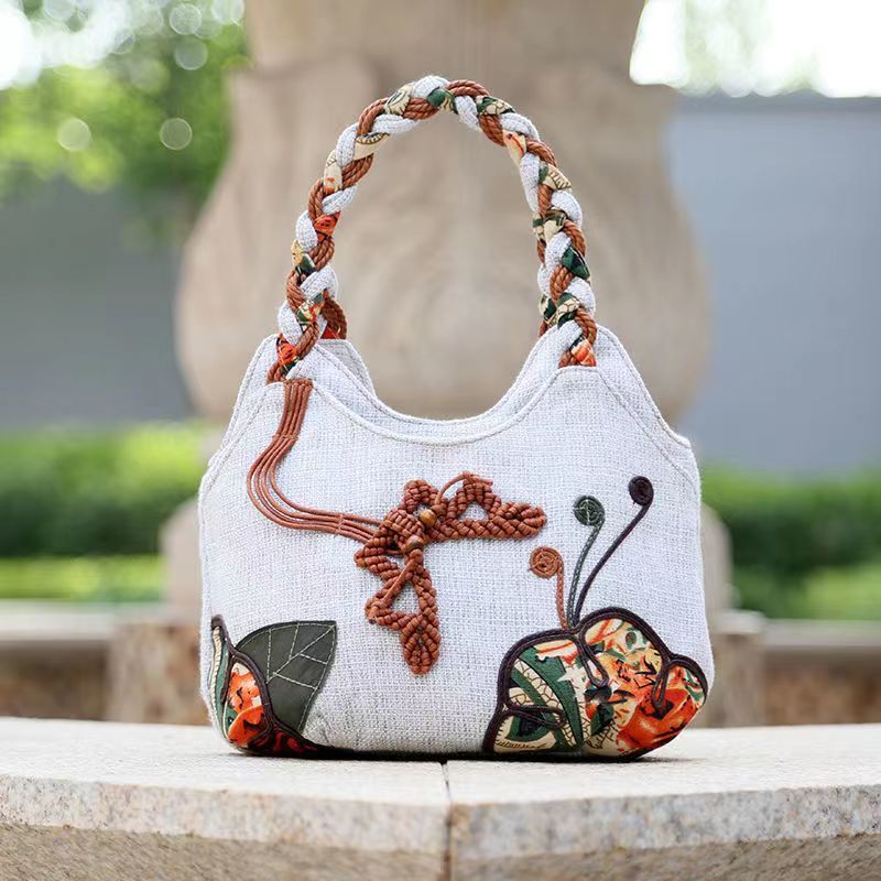 Middle aged women's bag, mother's bag, ethnic style handbag, women's cotton and linen cloth bag, simple and lightweight carrying bag, Chinese style handmade bag