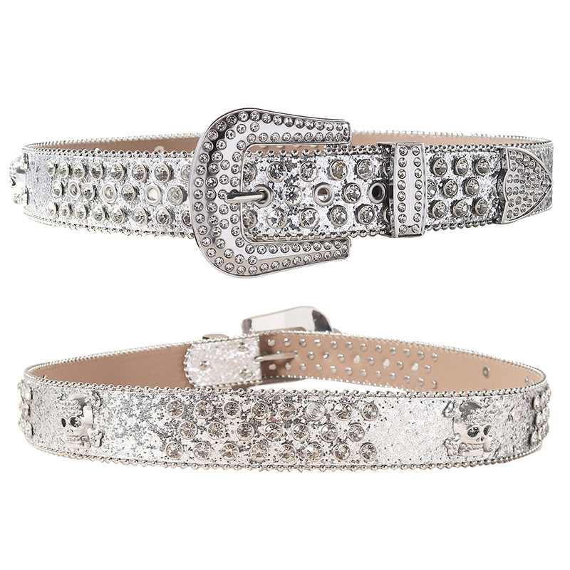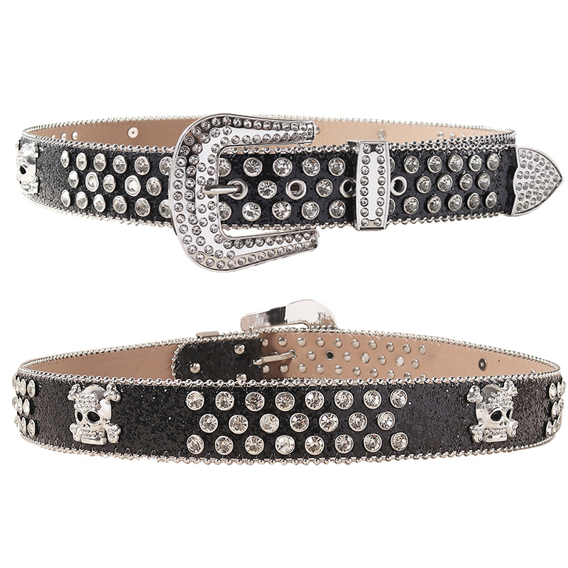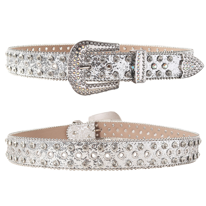 Belt for Women with Sequins and Rhinestones, Men's Rock Nightclub Personality Belt, Fashion Trend Punk Internet Celebrity Wide Belt for Men and Women