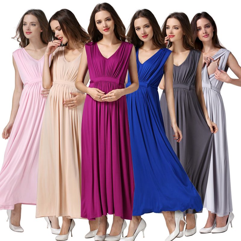 Modisches, langes, superweiches Stillkleid aus Modal mit seitlicher Öffnung für Schwangere, Größe L, Emotionmom