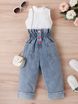 Mutter & Kinder Kinderkleidung Mädchen Sommer Pit Einfarbig Ärmellos Off Shoulder Pullover Zerrissene Jeanshose Zweiteiliges Set