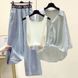 Damenbekleidung Große Größe 200 Pfund Fettes Mädchen Sommeranzug Weibliches gestreiftes Hemd Kleine Hosenträger Schlanke Jeans Dreiteiliger Anzug
