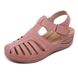 Insole material: PU style: Korean version upper material: PU inner material: PU sole material: rubber opening depth: shallow toe style: round toe heel height: mid heel sole style: sloping heel closure method: Velcro shoe production process: adhesive shoe pattern: solid color popular element: hollow out, waterproof table color: beige, black, red, blue, brown, pink, burgundy size 34-43