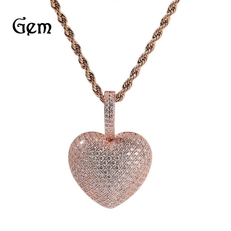 Neu Hip Hop 3D Liebe Anhänger Minimalistischen Instagram Stil Micro Set Zirkon Rose Gold Herz Halskette