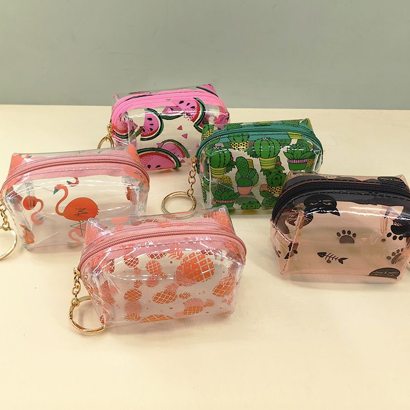 New Printed PVC Waterproof Coin Purse for Women Cartoon Mini Keychain Storage Bag Portable Small Bag
