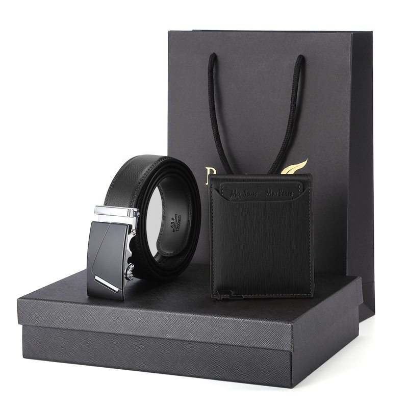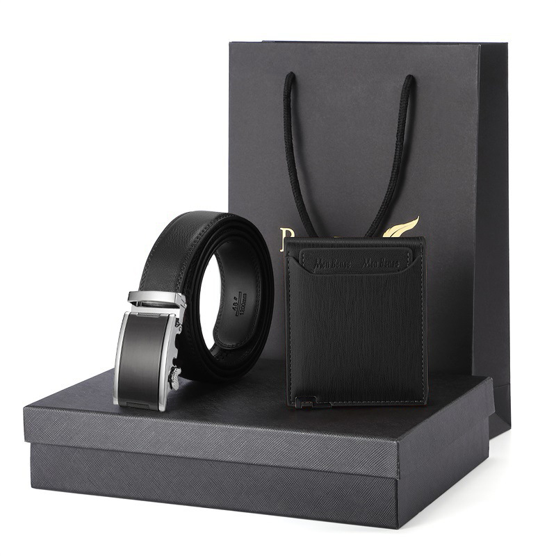 Neues Gürtel-Geschenk-Geldbörsen-Gürtel-Set, Unternehmensgeschenk, Herren-Echtleder, zweiteilig, Geschenkbox, Logo-Gürtel im Herren-Stil