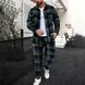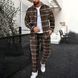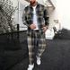 Autumn New Men's Gradient Plaid Long Sleeve Shirt and Pants Sports Casual Set