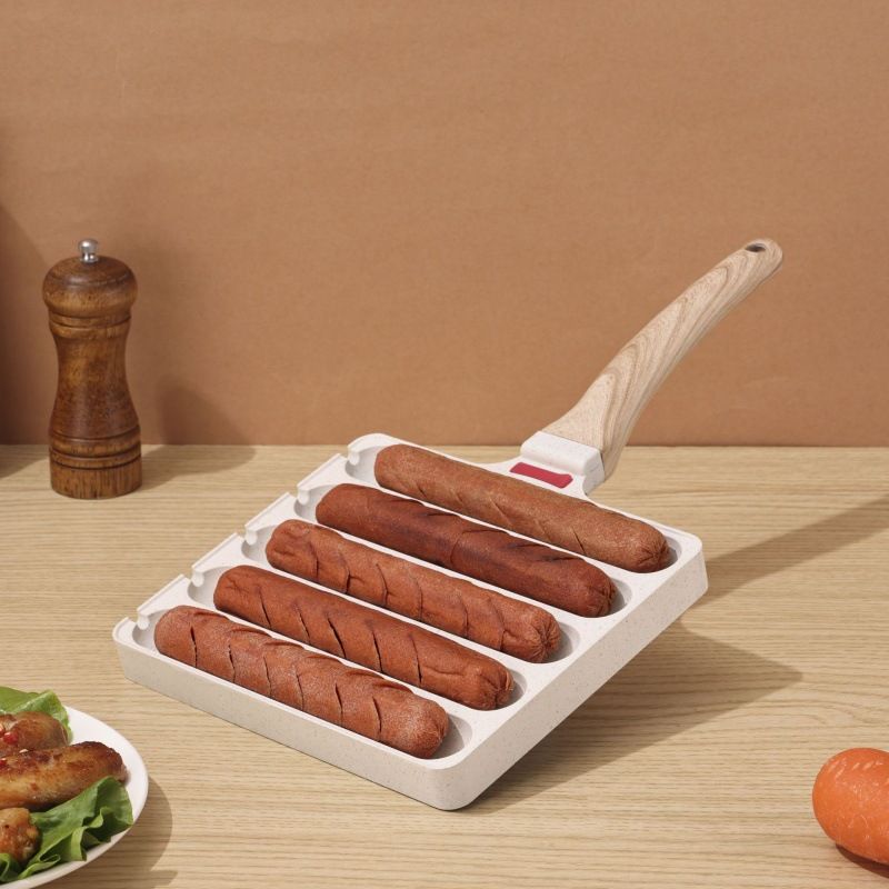 New Aluminum Uncoated Sausage Pan for Home Use, Small Crispy Sausage Maker, Commercial Grilling Sausage Breakfast Pan