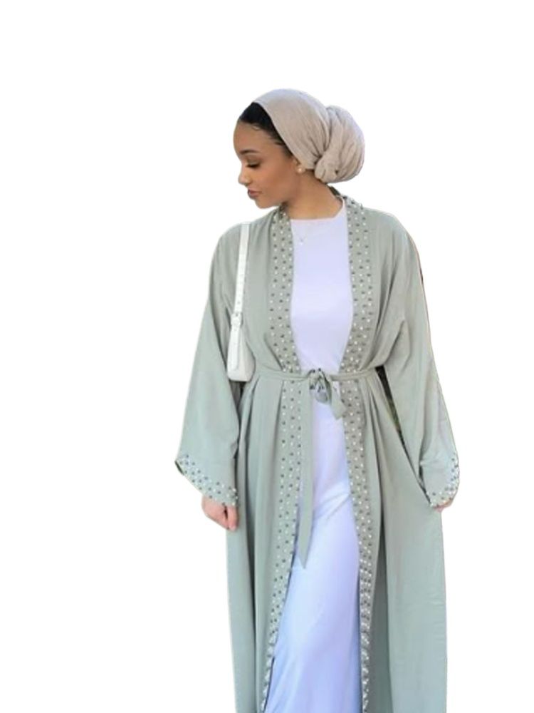 Neueste muslimische Abayas für Frauen islamische Mode Perlen Kimono Robe bescheidenes Kleid lange elegante Strickjacken Kleidung vorne offen Abaya
