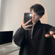 New autumn and winter half zip sweater for men, loose collar, simple knit sweater, high-end solid color pullover top