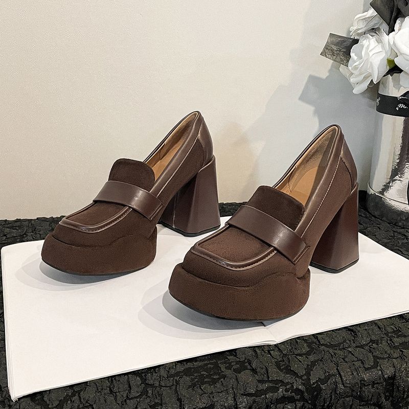 Nischendesign Dicke Sohle Klobige Tiefe Mund Einzelschuhe Für Frauen Neue Frühjahr Neue Square Toe High Heel Loafers