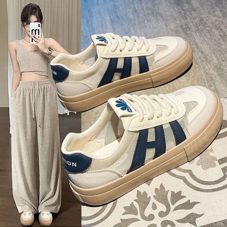 Nischendesign Mesh-Sportschuhe Damen Moral Training Board Schuhe Trendy Dickbesohlte Weiße Schuhe