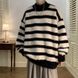 New versatile and simple striped semi high neck sweater for men in autumn and winter, thick inner knit sweater