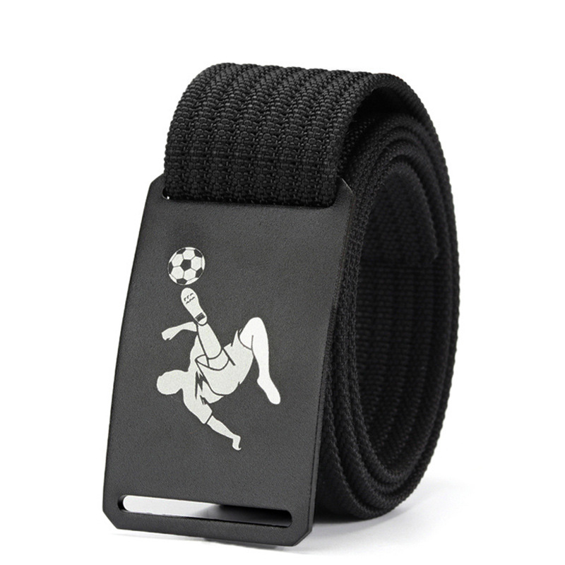 Nylon-Canvas-Gürtel für Herren mit zahnloser Aluminiumschnalle und Fußballmuster, doppellagig gewebt, trendig