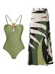 Einteiliges Bikini-Set, konservativer, bauchbedeckender Strand-Chiffon-Wickelrock, Thermalbadeanzug