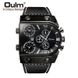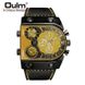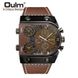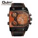 Oulm Large Dial Men's Quartz Watch Multiple Time Zones Fashionable Personality Quartz Men's Watch Leather Strap Watch