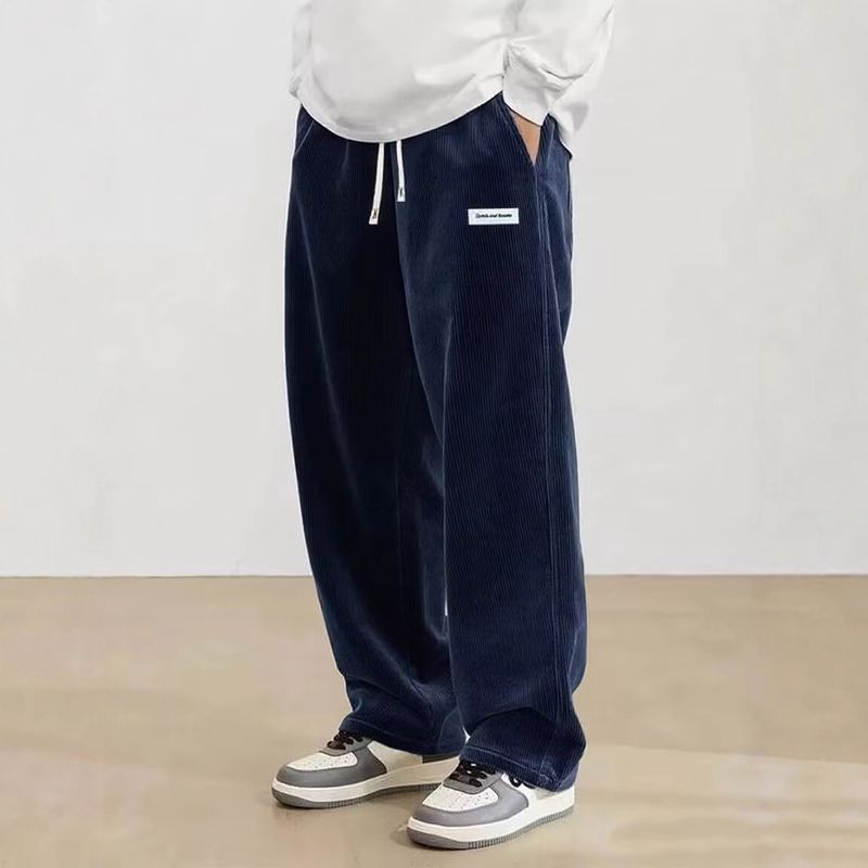 Ouma Men's New Corduroy Short Sleeve Casual Pants High Street Trendy Brand Straight Long Pants Fashion