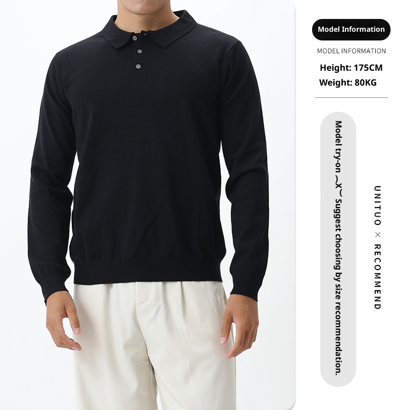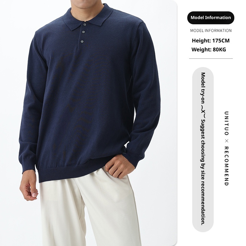 Product Source Category:In Stock,Material function:Machine washable, high color fastness,Item Number:YYTE41081,Brand:Unituo/Youli Tu,Design 1:Pullover,Design:Straight Cut,Collar Style:Turn-down Collar,Sleeve Length:Long Sleeve,Thickness:Average,Style:Light Business,Design details:Ribbed Hem,Bargain Category:Fashionable Urban 24-35 Years Old,Is it in stock?:yes,Inventory Type:Complete order,Suitable for everyone:Teenagers,Year/Season of Release:Autumn 2025,Fabric Name:Cotton Blend,Main fabric composition:Viscose,Content of the main fabric components:54.7% polyester 45.3% cotton,Applicable Scenarios:Everyday,Suitable for the season:Autumn,Applicable to the target audience:Youth,Color:Black, white, royal blue, gray, apricot,Size:M,L,XL,XXL,XXXL,Craftsmanship:Non-iron treatment,Main downstream platforms:, , Independent Site, , Others,Main sales regions:Europe, South America, Southeast Asia, North America, Northeast Asia, Middle East,We have authorized private labels available:No,Is it exclusively for cross-border export supply?:yes,Original Design Source:yes,Is there a quality inspection report?:No,Quality Inspection Report Number:Other,Suitable age group:adult,Trendy Elements:2025 New Model,What type of neckline?:Collared Knitted Sweater,Applicable Gender:Male,Receive the Label:With Collar Label,Product Category:Knit Sweater,What is the source type?:Direct Source Factory,Hang Tag:With tags,Suitable for the crowd:Boys