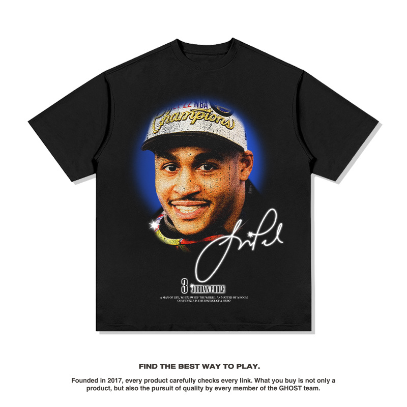 Poole Big Head Printed American Loose Fashion Brand Short sleeved Pure Cotton Small Neck Men's T-shirt