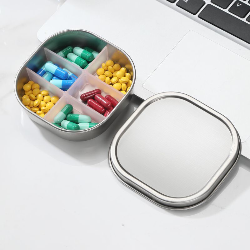 Farbe : Kleine Medikamentenbox aus lebensmittelechtem Edelstahl 304 mit vier Fächern