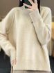 Damenbekleidung: Strickpullover mit Saum – Weiche Schafwollmischung, Pullover mit hohem Halsausschnitt, lässige, lockere Passform, einfarbiges Oberteil (Weiß, Beige, Khaki, Grau, Schwarz)