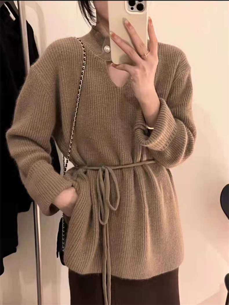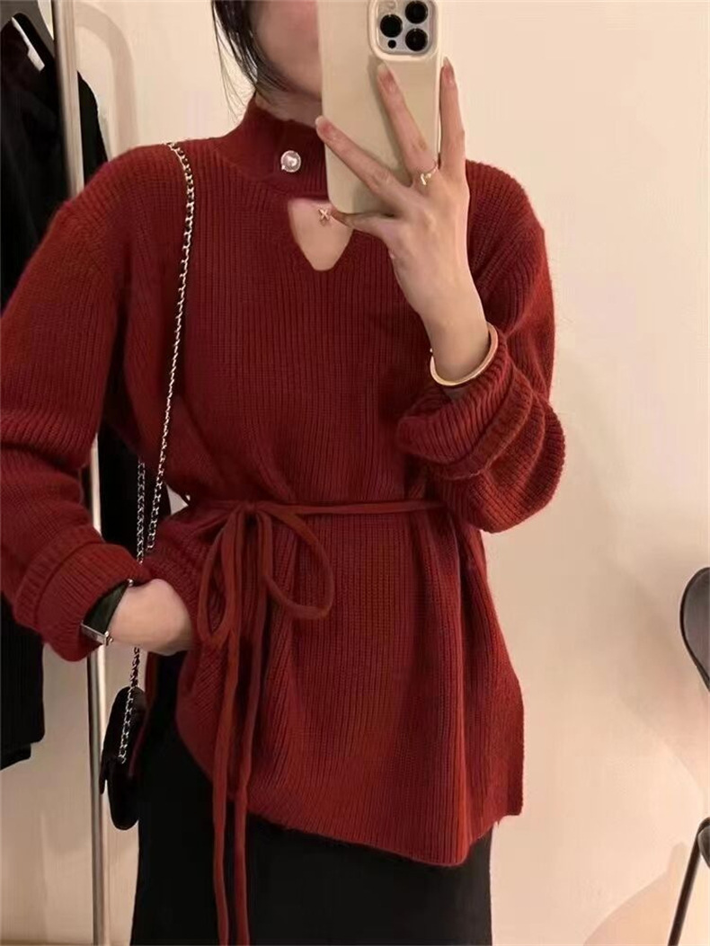 Sexy und sorgfältig maschinell ausgehöhlter Pullover für Damen, neues Temperament im koreanischen Stil, High-End-Gefühl, Schnürung in der Taille