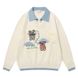 American Style Soft Bear Polo Collar Knitted Sweater for Men and Women, Loose and Lazy Chic Fake Two-Piece Top for Autumn and Winter