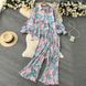 Zweiteiliges Set im Resort-Stil für Damen, lockeres Langarmoberteil mit französischem Print im Herbst und lässiges, hoch tailliertes