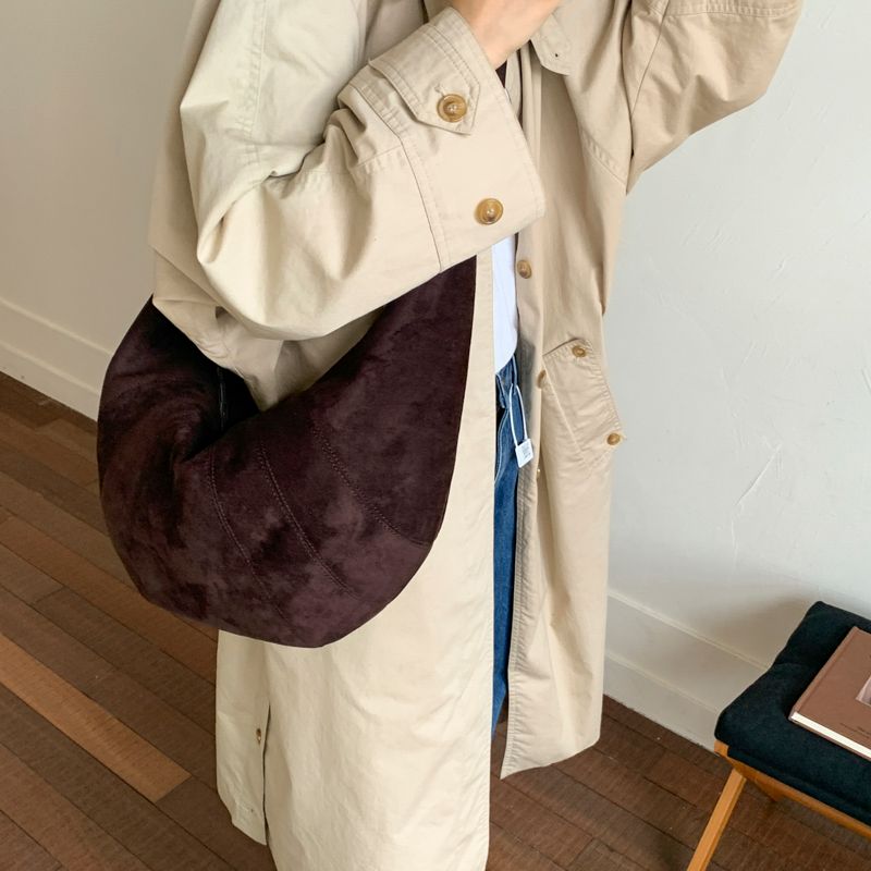 Retro-Knödeltasche im Lazy Style mit großer Kapazität, Damentasche mit großer Kapazität, 2025 neue Umhängetasche aus gefrostetem Samt mit einer Schulter und Kuhhorn