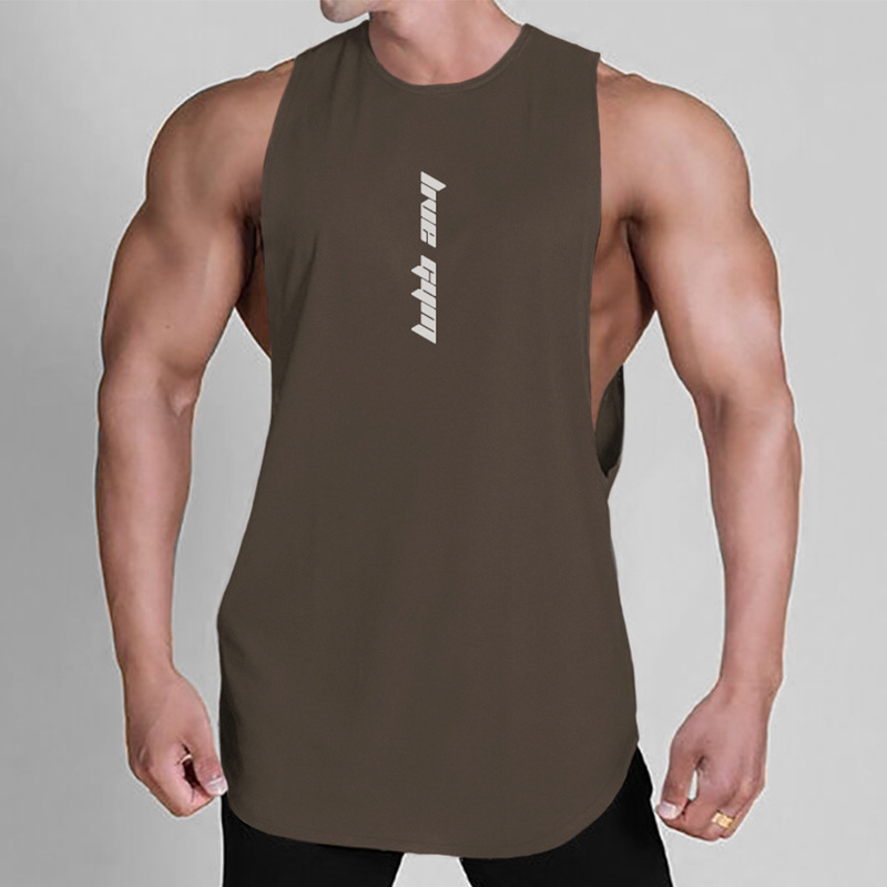 Men's summer youth oversized sports sleeveless tank top, men's trendy brand, large split cut sleeves