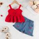 Every parent wants their little one to look cute while staying comfy! This 2-piece set combines a playful ruffle top with embroidered denim shorts, perfect for sunny adventures.