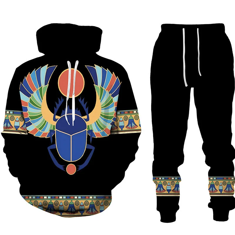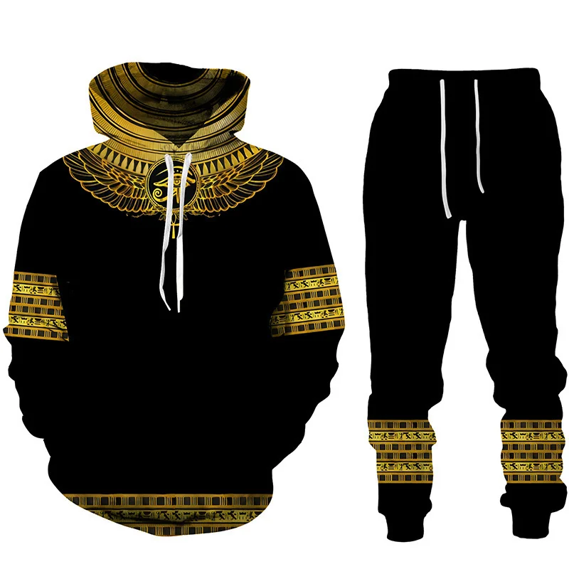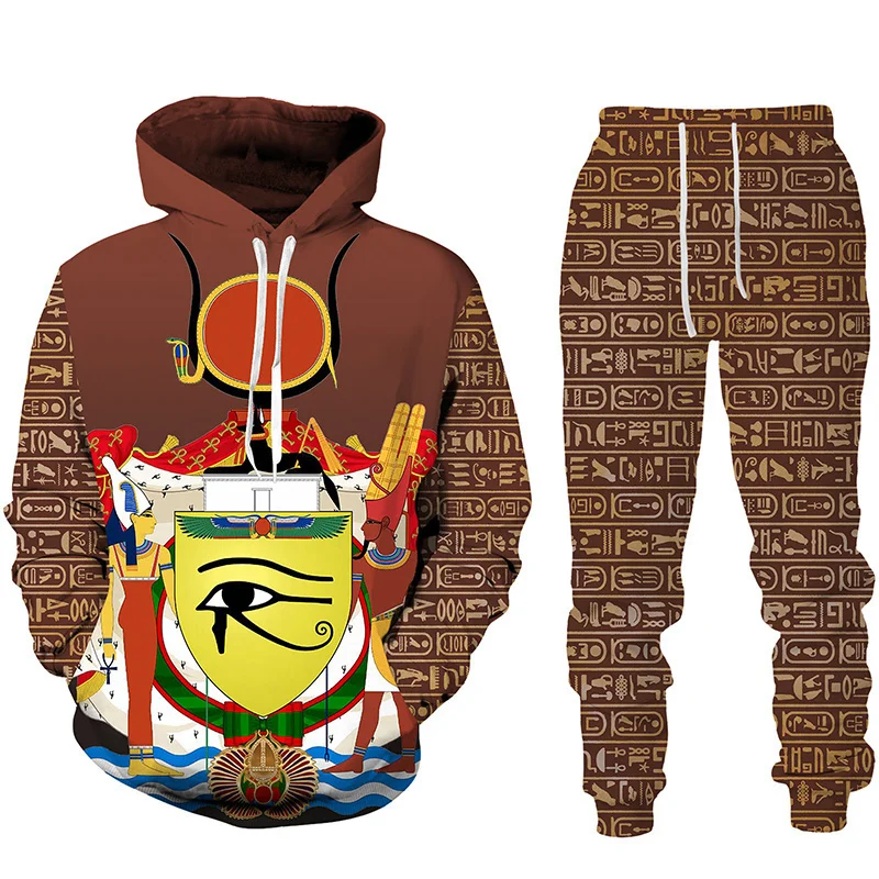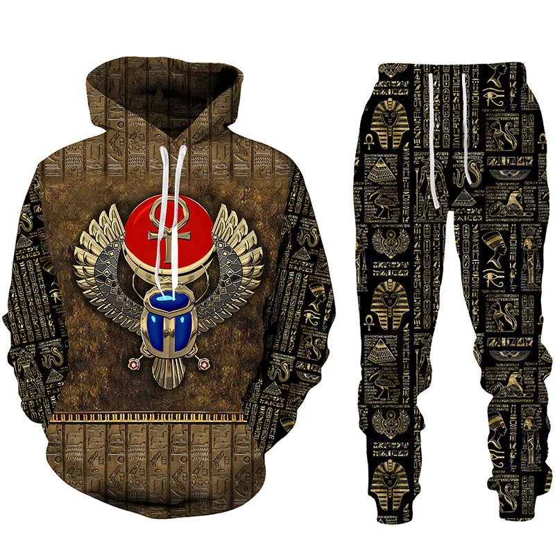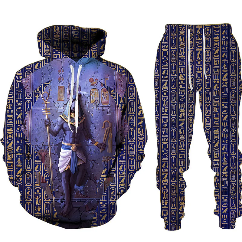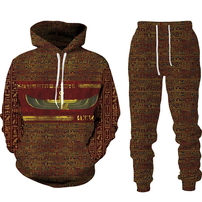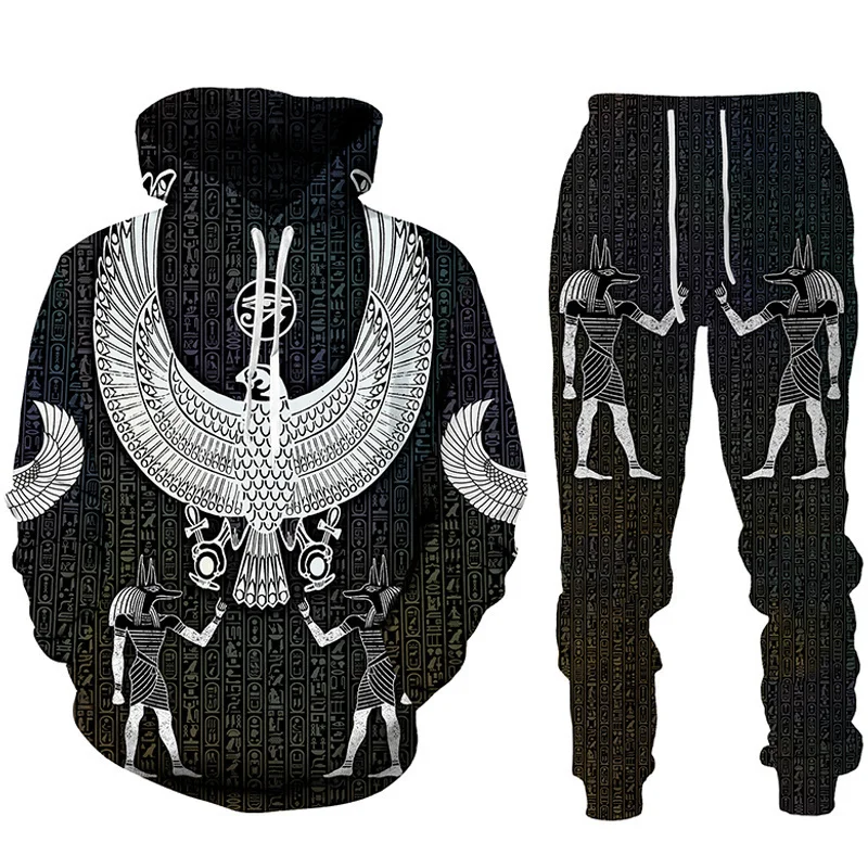 S-6XL Große Größe 3D Herren Jacke Ägypten Print Hoodie Hosen Set Herren Trainingsanzug Winter und Herbst Sportbekleidung Herren