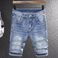 Schlichter Trend Hellblauer zerrissener Denim-Shorts für Herren Mode Vielseitige Casual Stretch-Shorts Herren Mittellange Hose