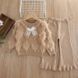 Set aus Boho-Strickpullover und Schlaghose für Mädchen – Koreanischer Stil, 3–8 Jahre (90–130 cm), weiche Polyestermischung, Schleifen- und Blumenakzente, Beige/Pink/Khaki