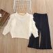 This knit sweater and flared pants set blends comfort and trendiness, making it a versatile choice for your little girl’s everyday adventures or special occasions.