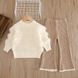 This knit sweater and fluffy flared pants set blends warmth and charm, offering a versatile winter wardrobe staple for your little trendsetter.