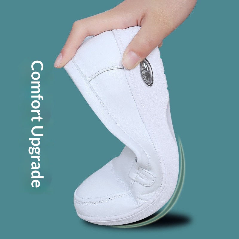 ShoeGlobe Nurse Weiße Damen-Schuhe mit Luftpolsterung, weich, bequem, atmungsaktiv, rutschfest, dicke Sohle, versteckter Keilsohle, ideal für Frühling und Sommer