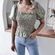 Sommer-Chiffonbluse mit quadratischem Ausschnitt und Laternenärmeln, Rüschen und Blumenmuster, Damenbekleidung