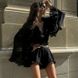 Summer Long Sleeve Dress Mesh Ruffle Commuter Black Waist-Cinching Short Dress Women Comfortable Dress
