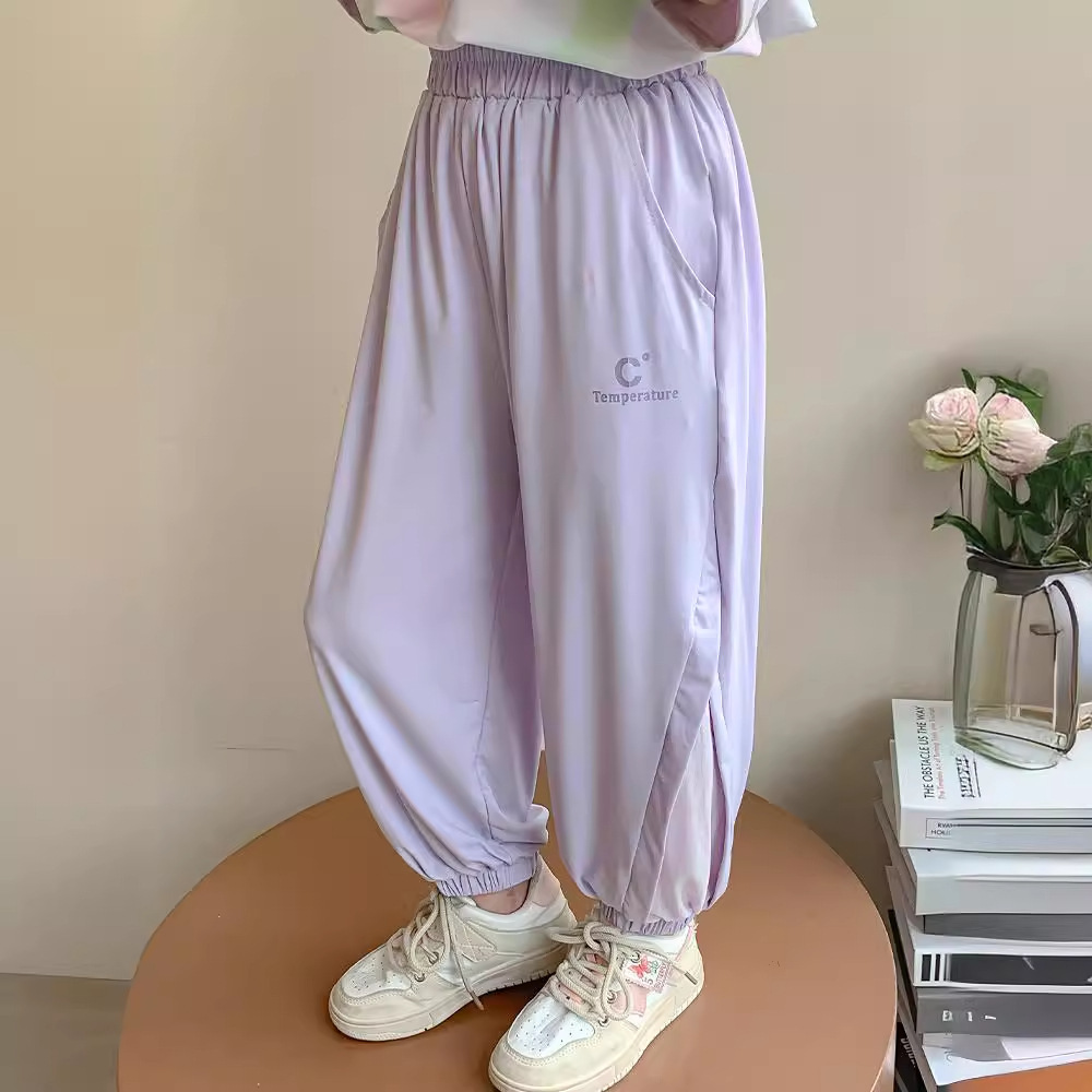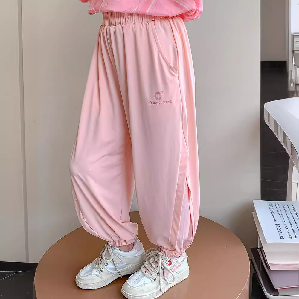 Summer Girls' Ice Silk Pants 2024 New Small and Medium sized Mosquito resistant Pants Thin Sunscreen Quick drying Pants Children's Sports Pants Women