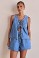 Sommermode Casual Sleeveless Tie Taille Damen Weste Denim Shorts Set