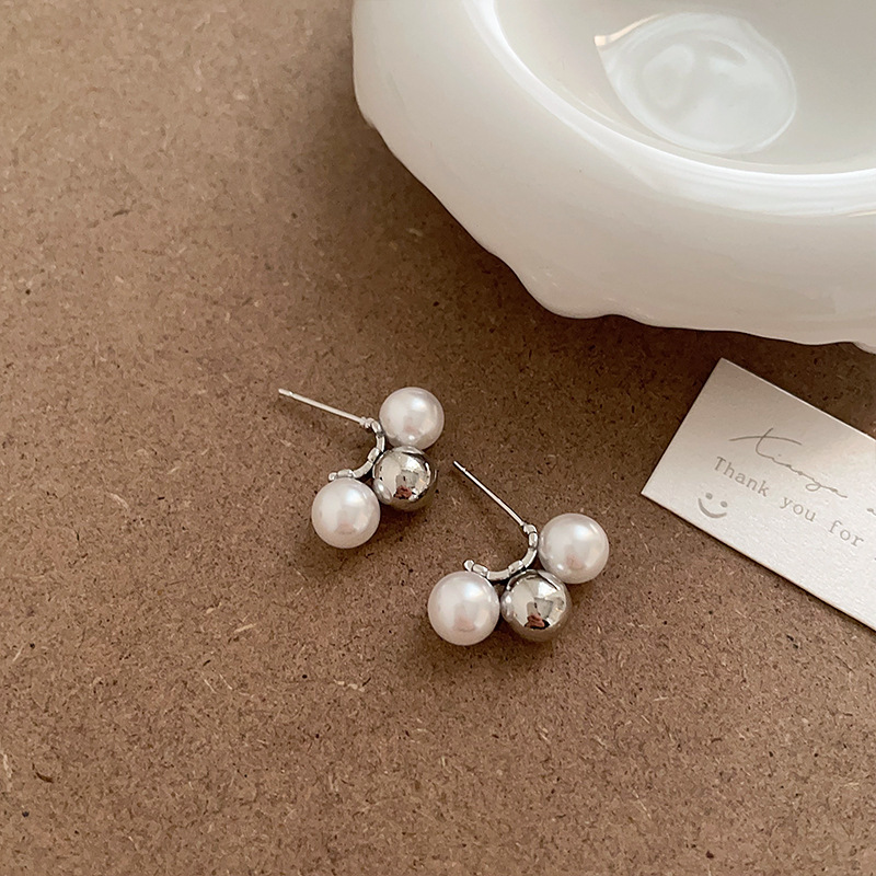 Spleißen von Metallkugeln mit gebogener Perle für Nischendesign für Frauen, dynamisches, schlichtes Temperament und Ohrring-Accessoires