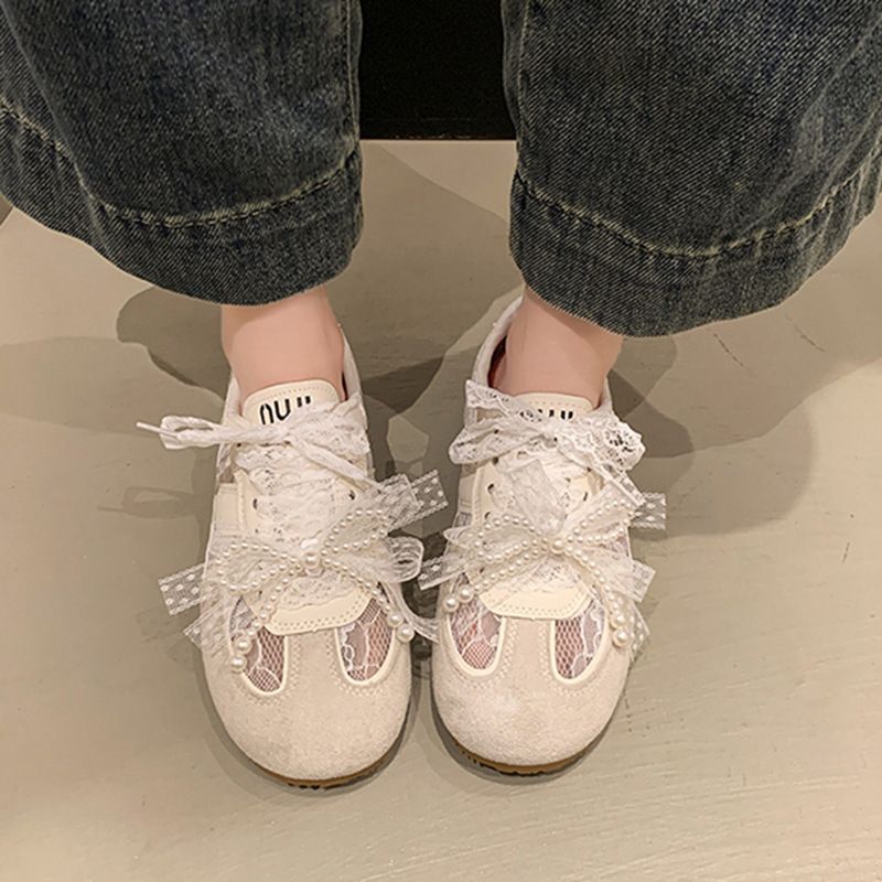 Summer Lace Mesh Breathable Versatile White Sneakers for Women 2025 New Flat Lightweight Casual Niche German Training Shoes
