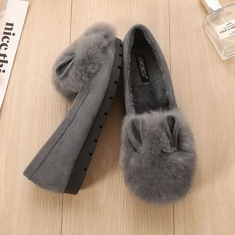 T21 Yixin Da Echtes Kaninchenfell Gefüttert Baumwolle 2025 Neue Winter Warme Halbschuhe Dicke Sohle Höhe Erhöhen Pelzigen Schuhe
