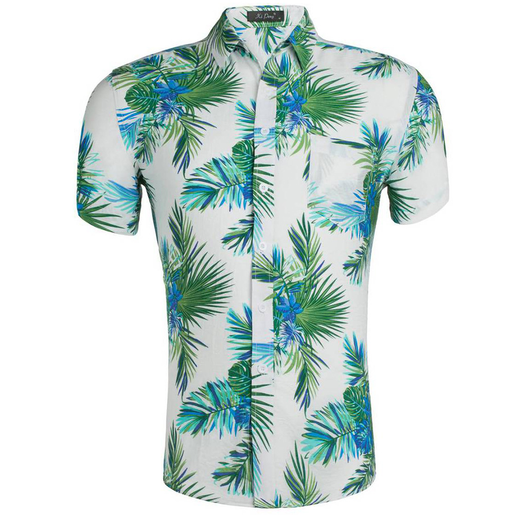 Tian Si Cotton Large Wear US Sleeve Hawaiian Printed Men's Shirt Short Sleep