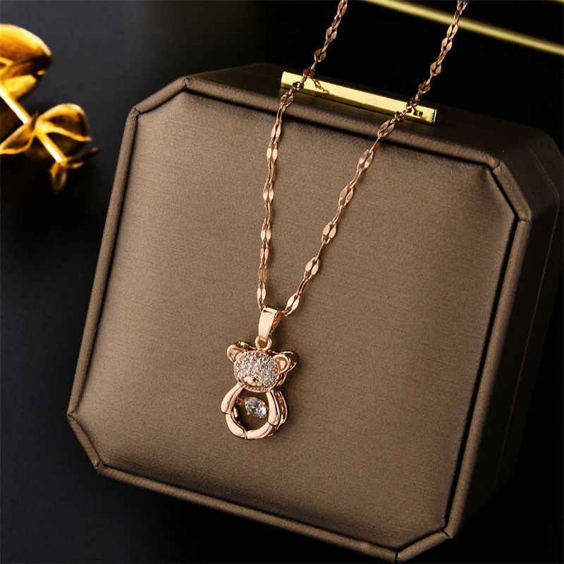 Titanium Steel Little Bear Lingdong Necklace Women's Inns Cute Animal Pendant Net Red Jumping Collar Chain Fashion Jewelry