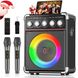 2 Microphones Karaoke Machine: HWWR Portable Karaoke Machine for Adults and Kids, Bluetooth Karaoke Speaker with Bass/Treble Adjustment, PA System with Remote Control/LED Lights, Supports REC/USB/AUX