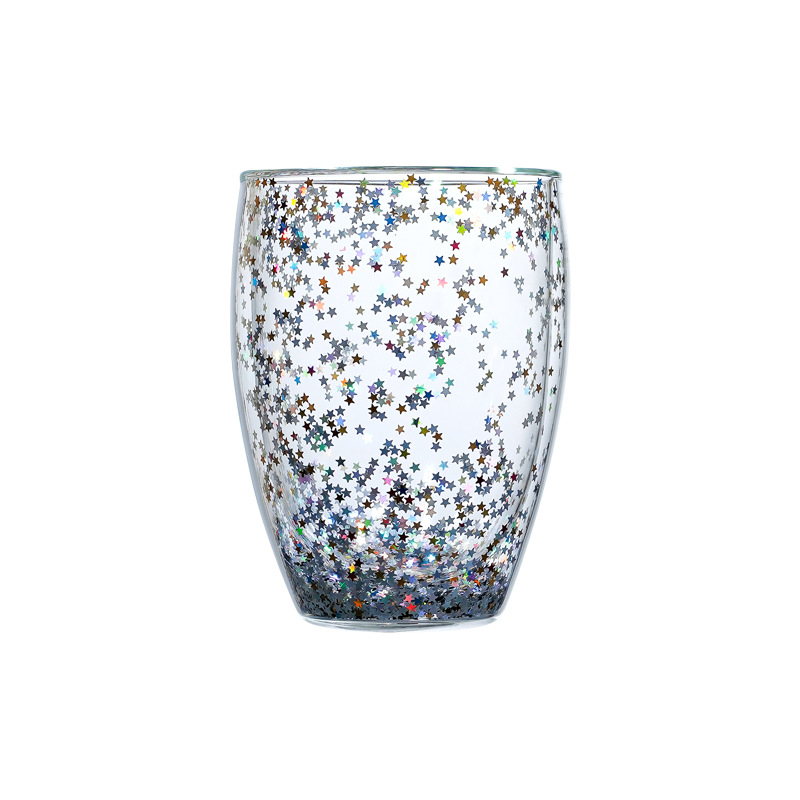 Transparenter, doppelschichtiger Glasbecher mit Sternenhimmel, Frühstücksmilch, Kaffeetasse, Saftbehälter, Valentinstagsgeschenk, Küchenbedarf