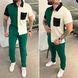 Trendiges, lässiges Sport-Set für Herren: Kurzarmhemd und lange Hose im Herbst-Color-Blocking-Stil