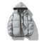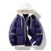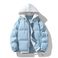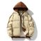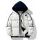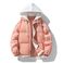 Unisex-Wintermantel mit anpassbarem Logo – Locker sitzende, gestreifte Paarjacke mit Kapuze und falschem zweiteiligem Design